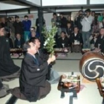 思い出の一枚 山口県防府市小俣八幡の笑い講である。 年に一度、12月第一日曜日、21人の世襲講人が頭屋(世話人)の自宅の祭壇前に集まる。宮司の神下ろしのあと、祝宴、やがて、宮司が笑い講開始を宣言して太鼓を叩く。長老の「せいのっ」の掛け声があって、二人がコ ...